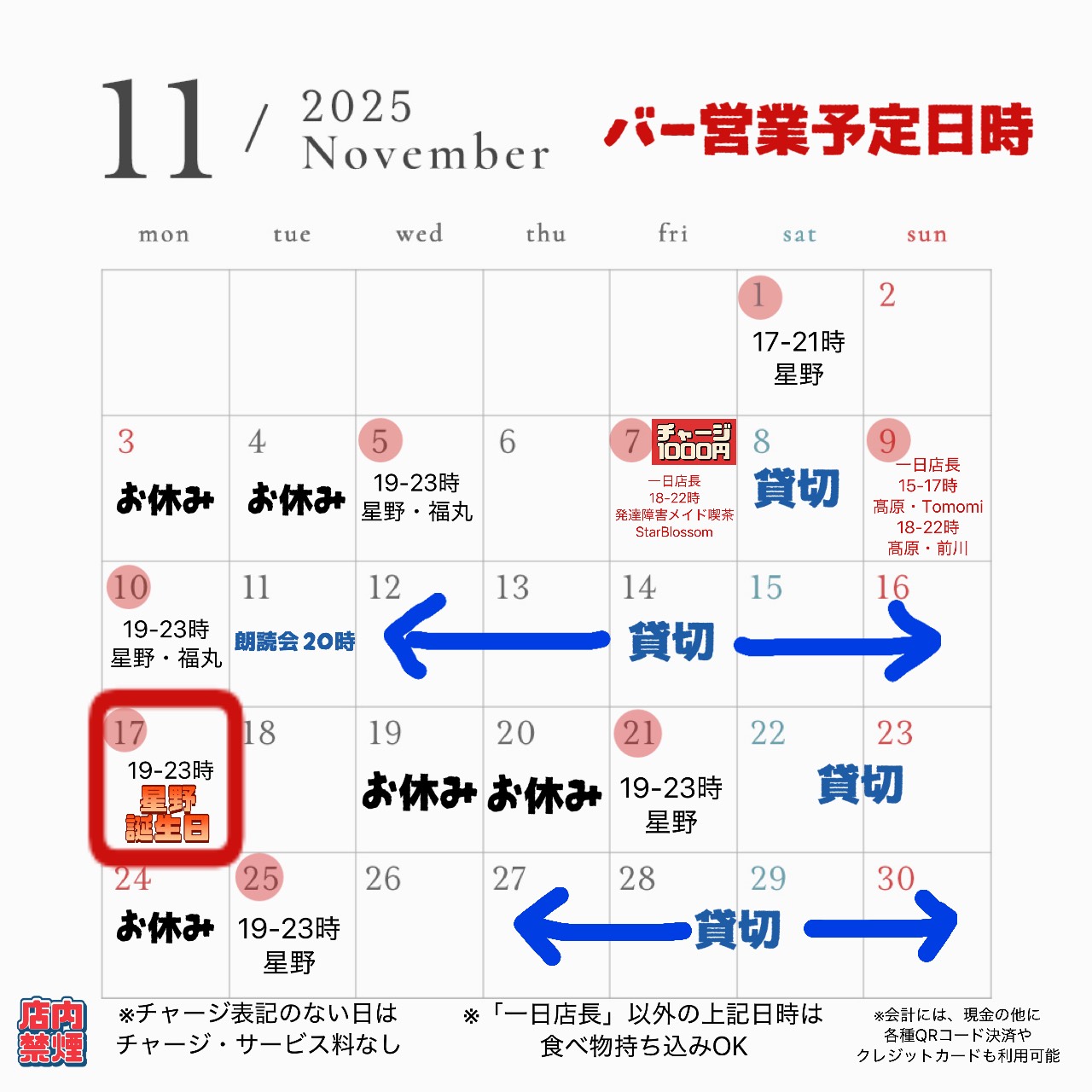 【バー営業予定】