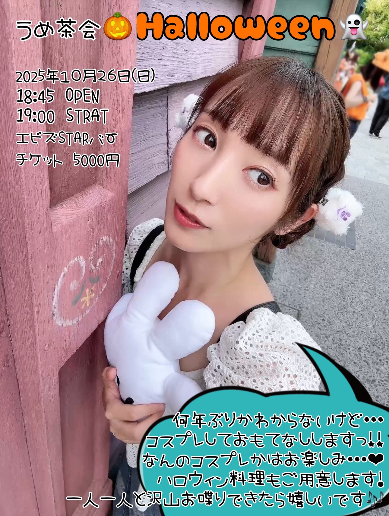 2025年10月26日(日) 2018年4月30日 ebisustarbar 19:00 START 【ご予約方法 】 umedaharuka315@gmail.com 上記アドレスに、件名「うめ茶会」、お名前、人数をご記入の上 送信をお願い致します。